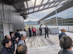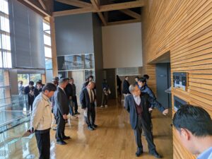 村有林SGEC材をふんだんに利用した川場村役場庁舎KAWABA BASEを外山京太郎利根沼田森林組合長兼川場村長にご案内いただきました。