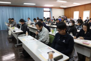 令和8年2月19日、県森連研修室において、R7第2回「林産・販売事業会議」を開催しました。本会議は、森林組合系統運動「JForestビジョン2030」の実践に向け、「循環型林業の確立」と「系統の木材販売力の強化」を着実に推進することを目的に、原木の共同販売体制の構築やスマート林業の推進、各森林組合の素材生産実績および事業計画の共有を図るとともに、製材工場等の需給情報をきめ細かく集約し、タイムリーに発信することで、各森林組合の木材生産・販売戦略への活用を促すものです。